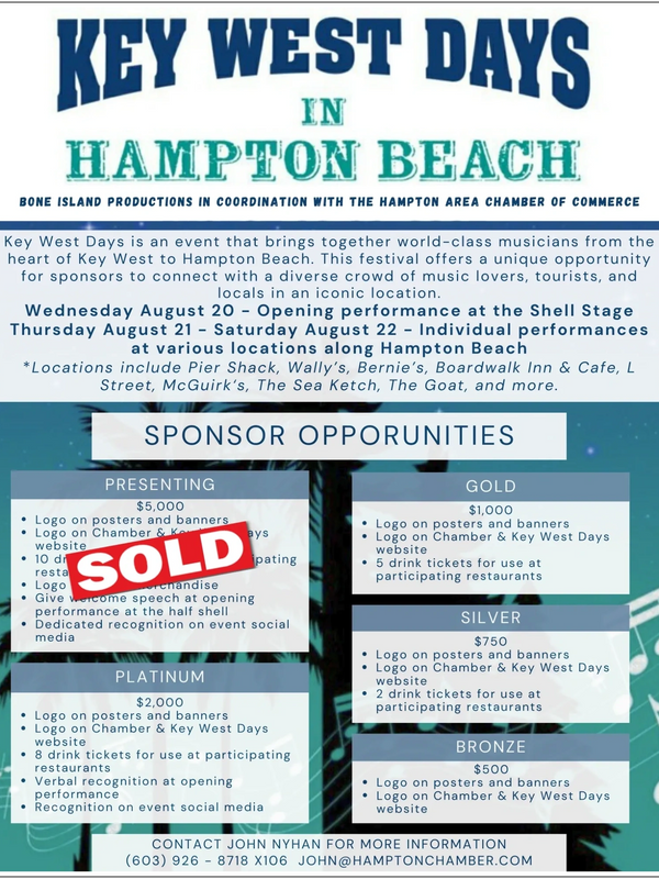 As a sponsor, you’ll have the opportunity to showcase your business to music lovers from around the world, all while supporting the arts and the vibrant Key West experience. With a range of sponsorship levels available, we offer tailored packages to ensure your brand receives maximum exposure throughout the festival. Join us in making this event a success and gain valuable visibility with audience members from across the country.